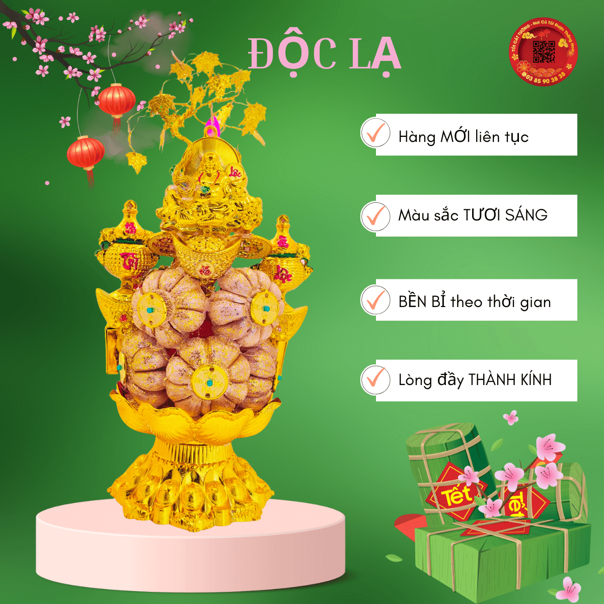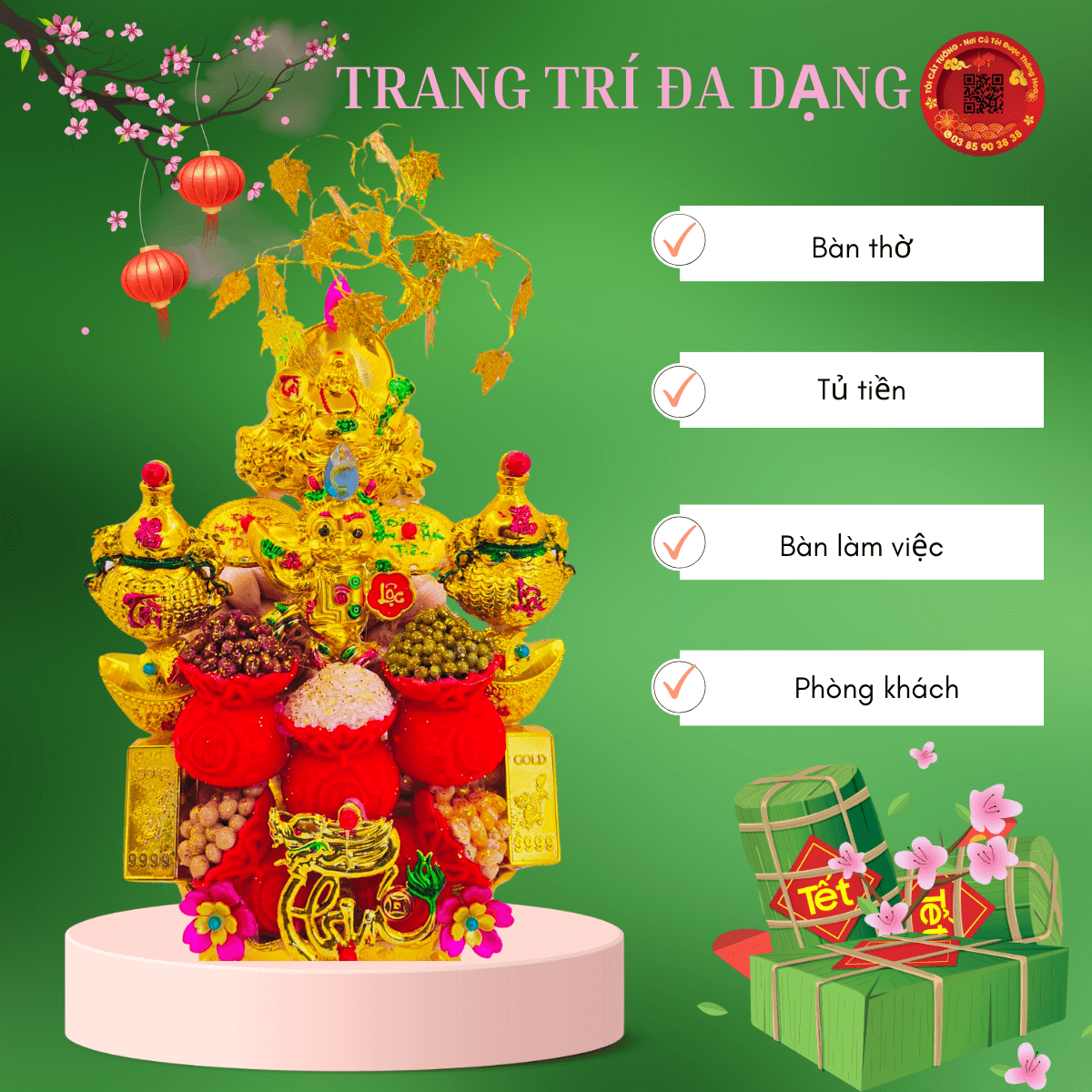 Thỏi vàng là biểu tượng của tài lộc và tiền bạc, màu đỏ của hủ vàng và tiền vàng lấp lánh đẹp mắt, khi đặt trong nhà mang ý nghĩa đồng tiền luôn sinh sôi nảy nở, thuận lợi liên tục, từ đó mà đại vượng tài vận.