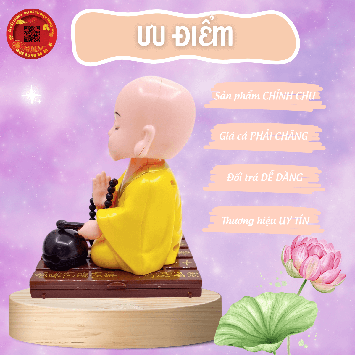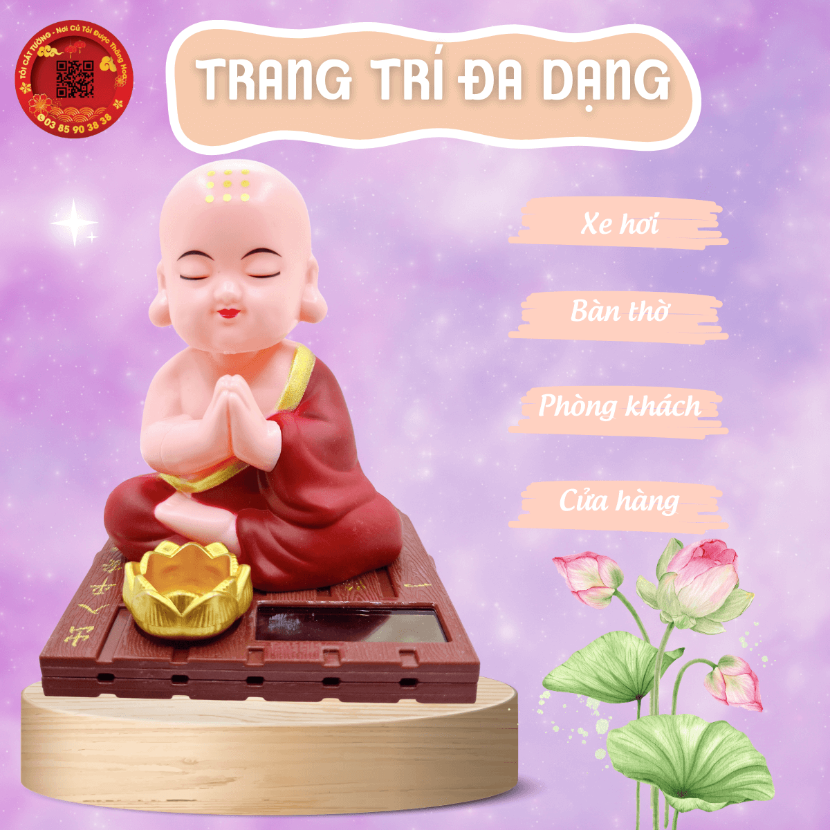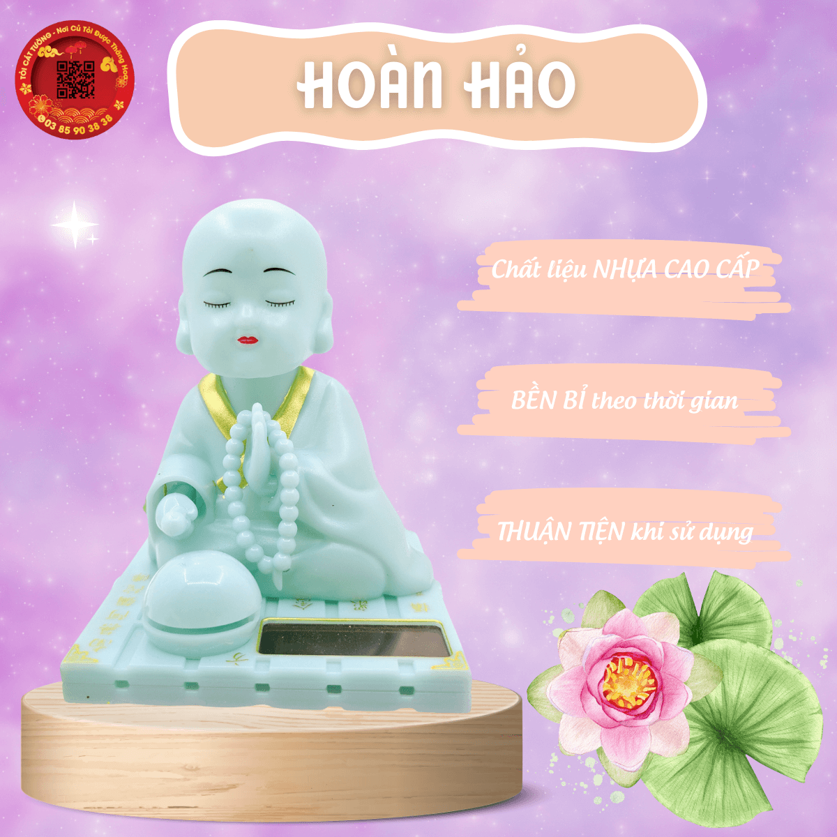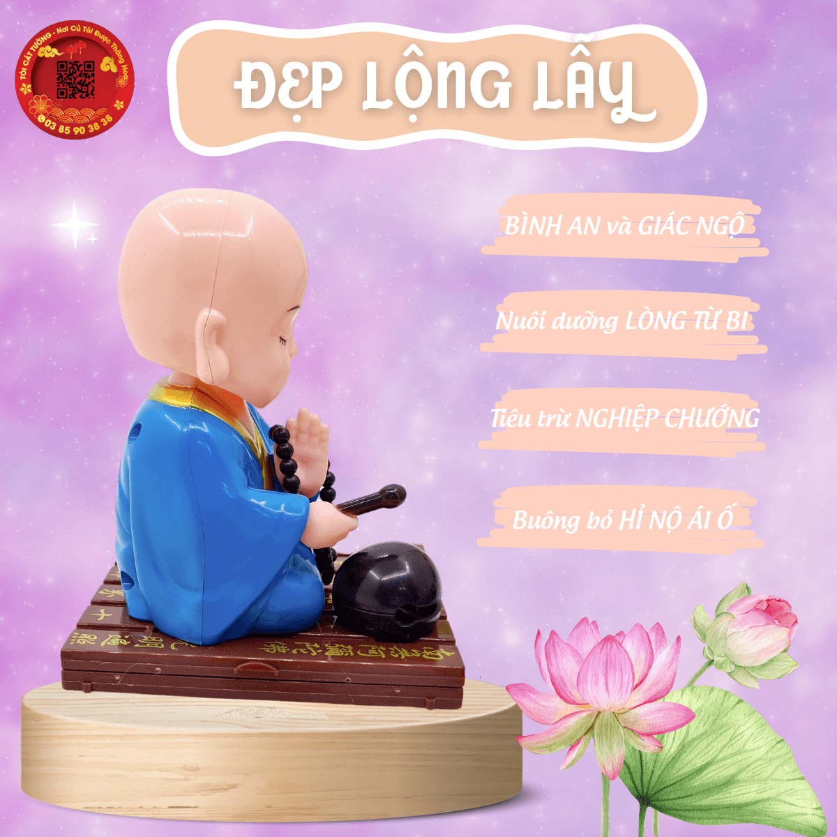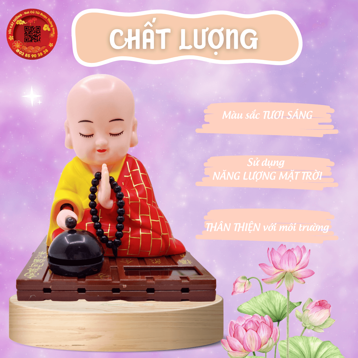 Hòa thượng tịnh tâm gõ mỏ năng lượng mặt trời với thiết kế chuẩn phong thủy, chất liệu thân thiện môi trường, màu sắc tươi sáng, chất lượng bền bỉ theo thời gian thích hợp trang trí và làm quà tặng cho bạn bè, người thân trong mọi dịp lễ tết, kỷ niệm!