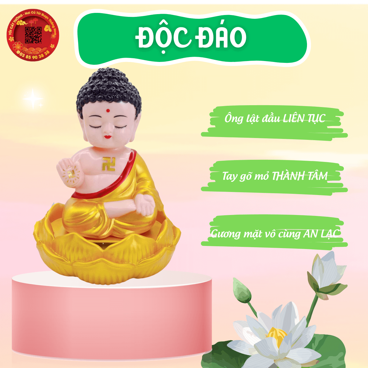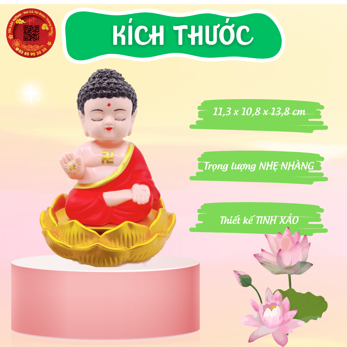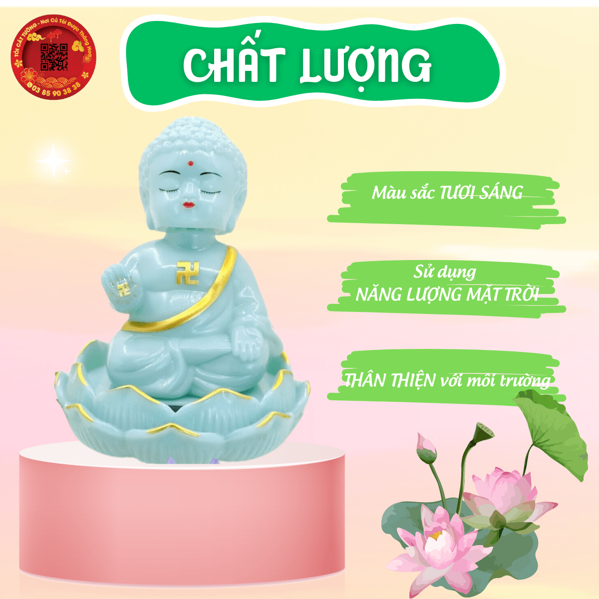 Phật thích ca mâu ni ngồi đài hoa sen năng lượng mặt trời có 3 màu gam màu đặc sắc, chất liệu nhựa thân thiện môi trường, thiết kế chuẩn phong thủy, chất lượng bền bỉ theo thời gian thích hợp trang trí và làm quà tặng cho bạn bè, người thân trong mọi dịp lễ tết, kỷ niệm!