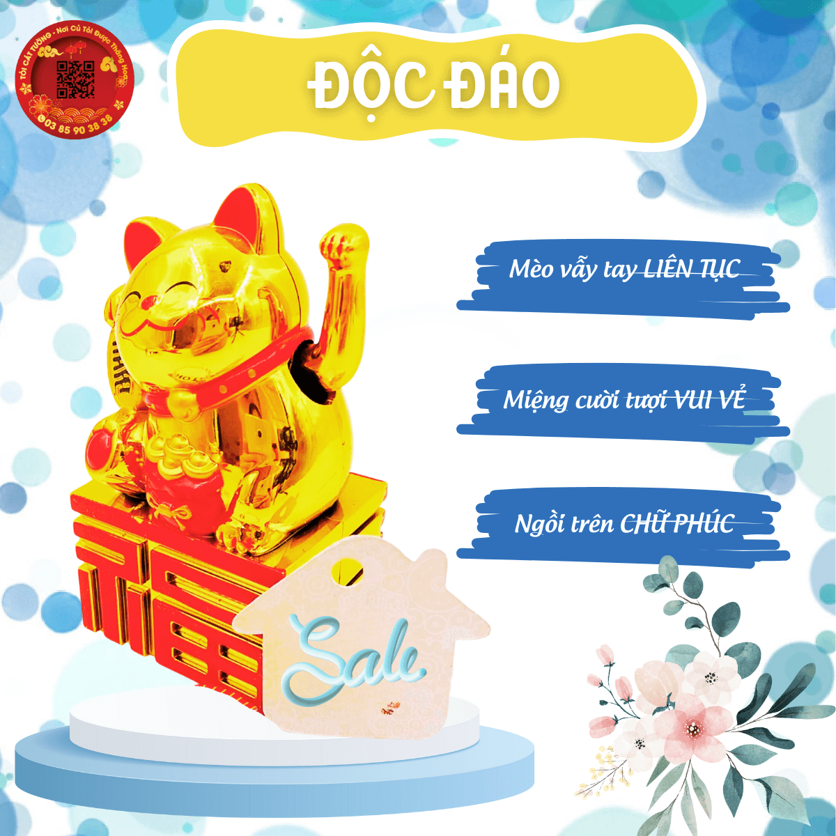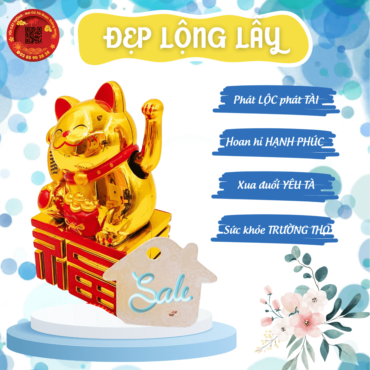_ Mèo Thần Tài Mini không ngừng vẫy tay sẽ giúp gia chủ phát tài, phát lộc và nhiều điều hoan hỉ trong cuộc sống.