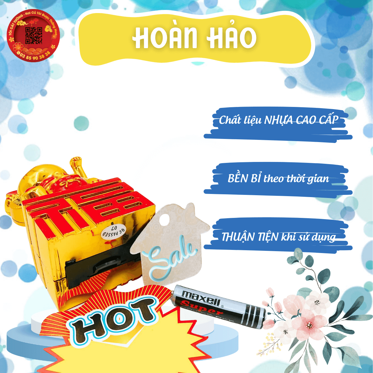 Mèo Thần Tài Mini Ngồi Trên Chữ Phúc sử dụng pin 3A nên cực kỳ tiện sử dụng. Bạn có thể đặt trên bàn, trên tủ, trên xế hộp,... mà không lo câu mắc dây điện lung tung.