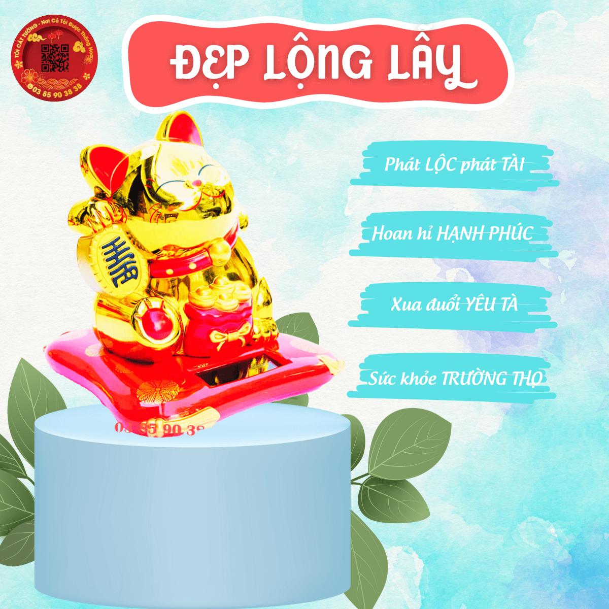 Mèo Thần Tài Năng Lượng Mặt Trờivẫy chân trái được cho là mang lại nhiều khách hàng, may mắn cho các cửa hàng hoặc doanh nghiệp. Một số người còn tin rằng chân mèo càng vẫy cao thì càng nhiều tài lộc tới với mình.