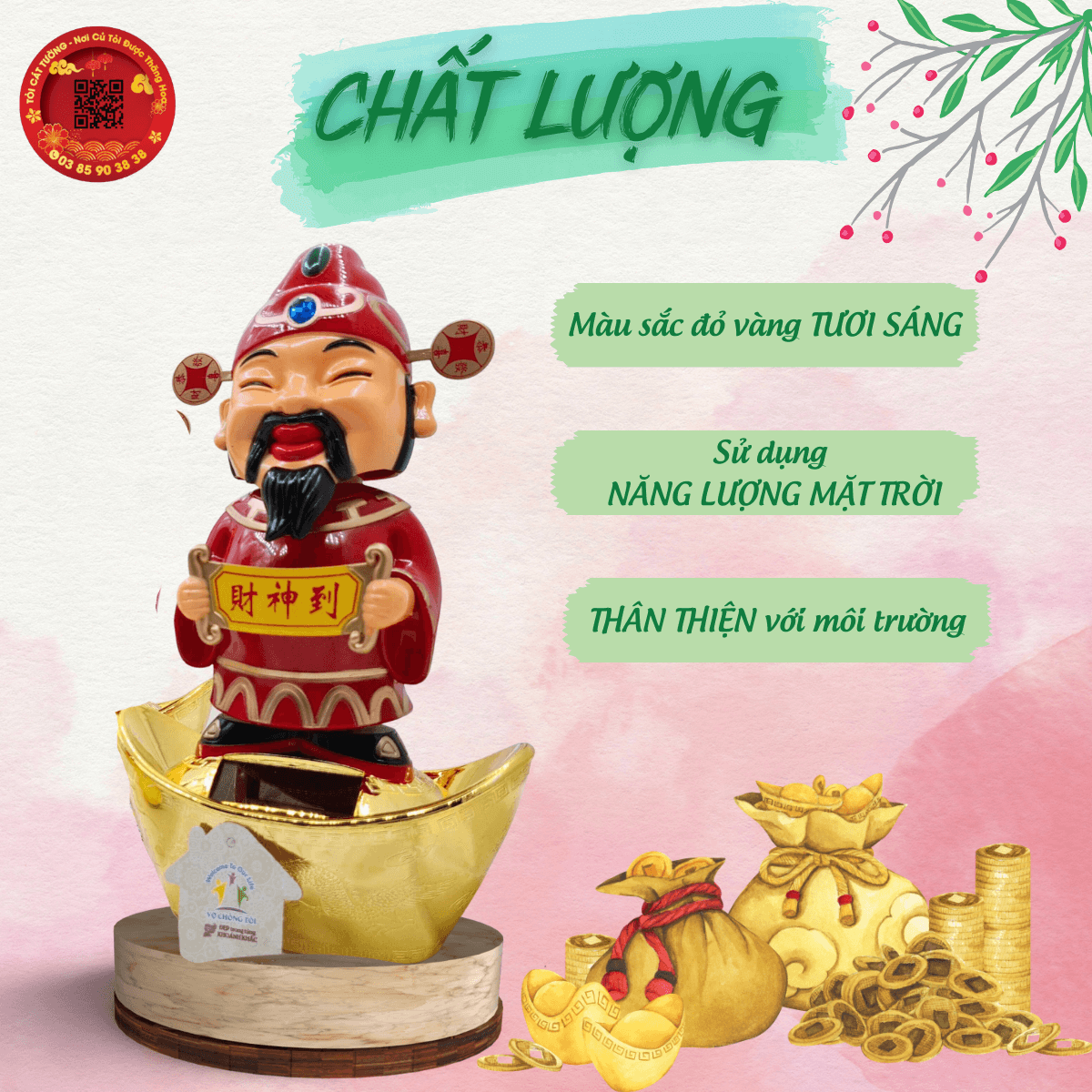 Thần Tài Vẫy Tay Gật Đầu May Mắn Năng Lượng Mặt Trời với hình tượng Thần Tài theo thời gian ngày càng sinh động và phong phú. Hình tượng của Ngài ngày nay còn gắn liền với phú quý, tiền tài, ví như những hình tượng Thần Tài tay nâng những nén vàng lấp lánh hay quảy bị tiền…và đây cũng là hình ảnh gợi những mong ước thiết thực và gần gũi nhất của con người.
