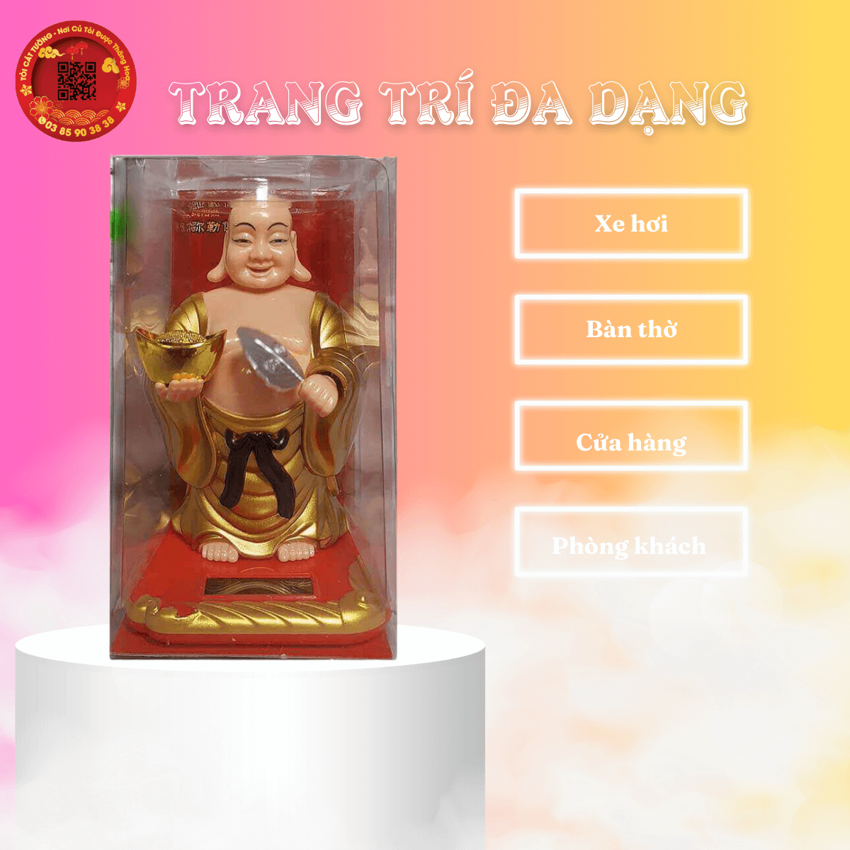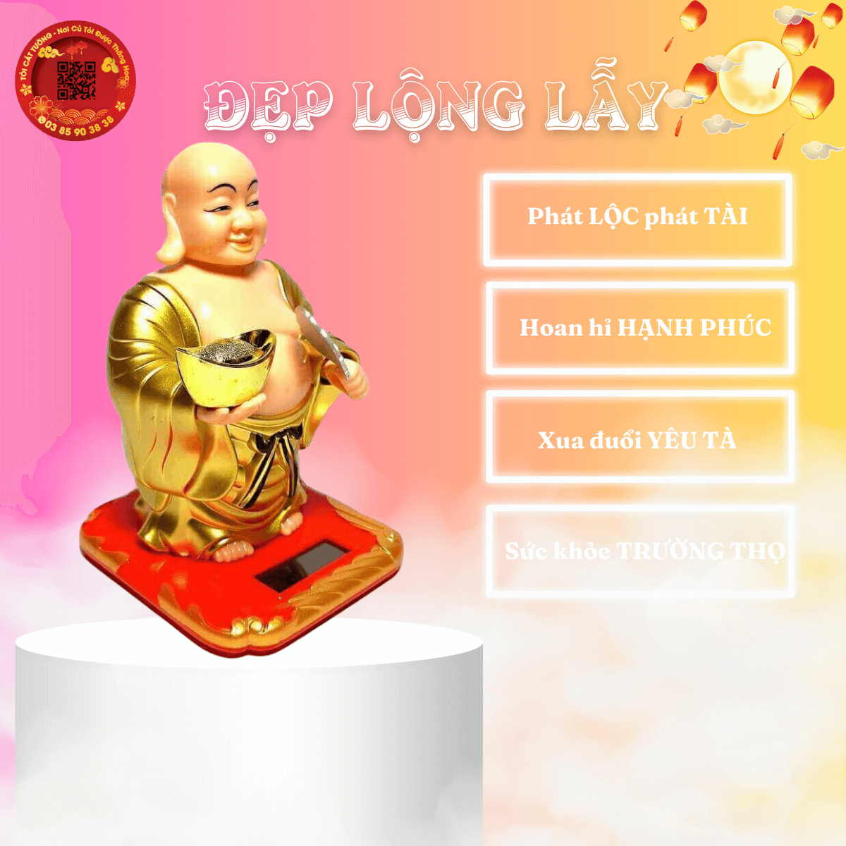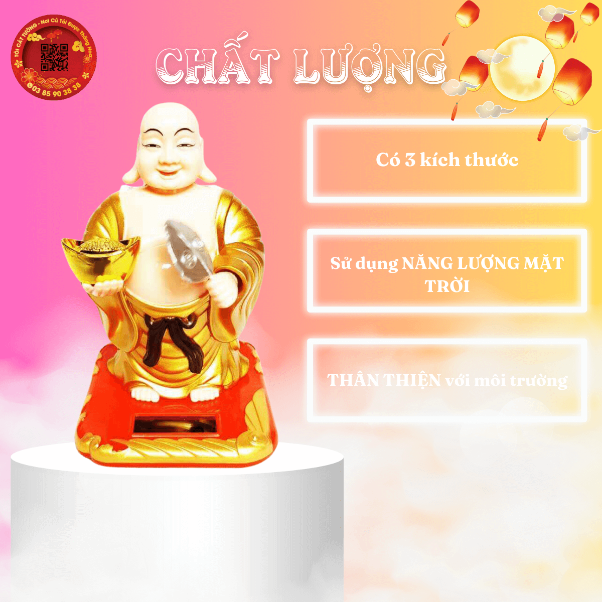 Vợ Chồng Tôi hân hạnh được mang đến Tượng Phật Di Lặc Đứng Năng Lượng Mặt Trời sử dụng bằng năng lượng mặt trời hoặc ánh sáng bóng đèn điện nhỏ, thân thiện môi trường, tiết kiệm năng lượng và cực kỳ thuận tiện trong quá trình sử dụng!
