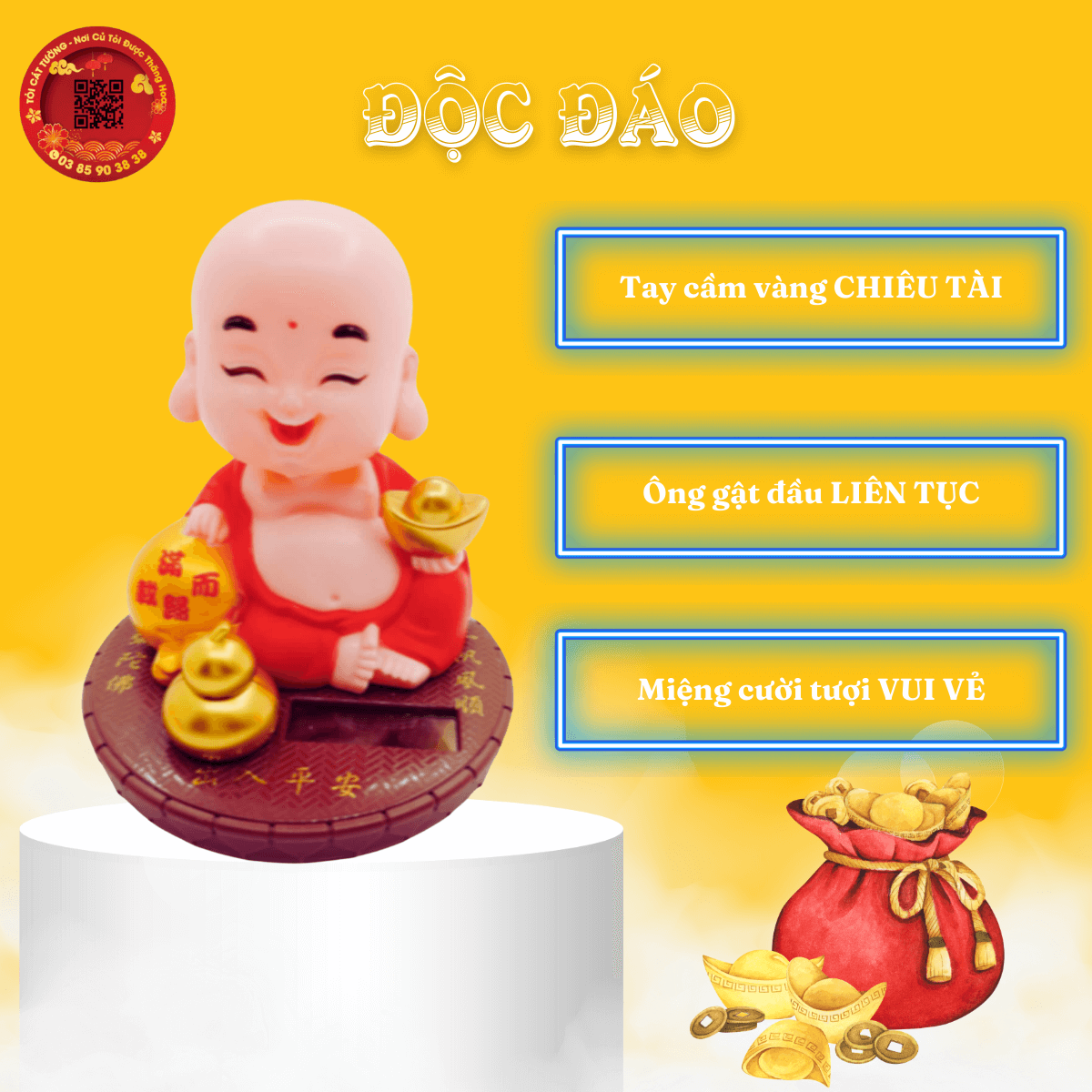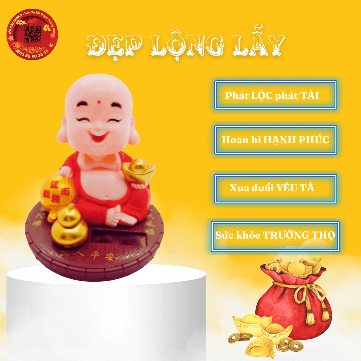 Tượng phật di lặc hoan hỉ năng lượng mặt trời sẽ độ trì cho bạn có tinh thần minh mẫn, luôn vui vẻ lạc quan, thêm bạn bớt thù và sự nghiệp hanh thông nhé!