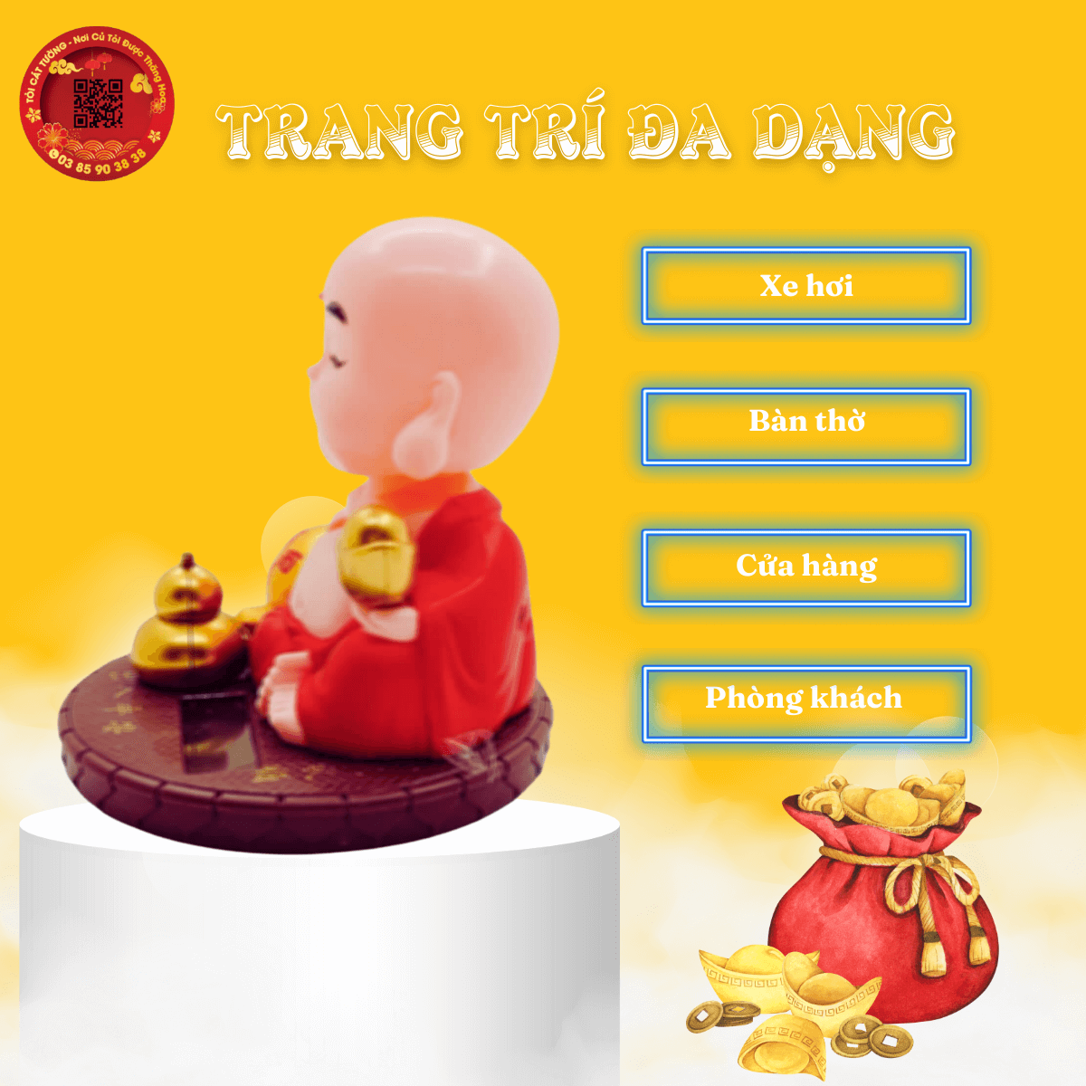 _ Dùng trang trí xe ô tô, cửa hàng, văn phòng, công ty, phòng khách,... nhằm thu hút năng lượng tích cực cho gia chủ và xua đi năng lượng tiêu cực.