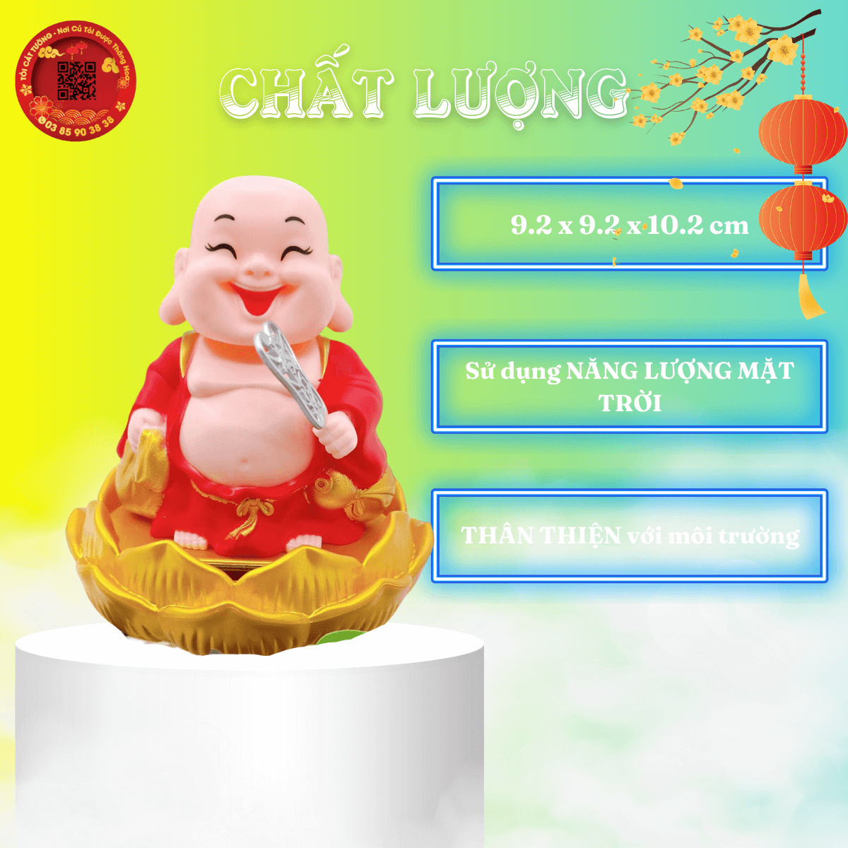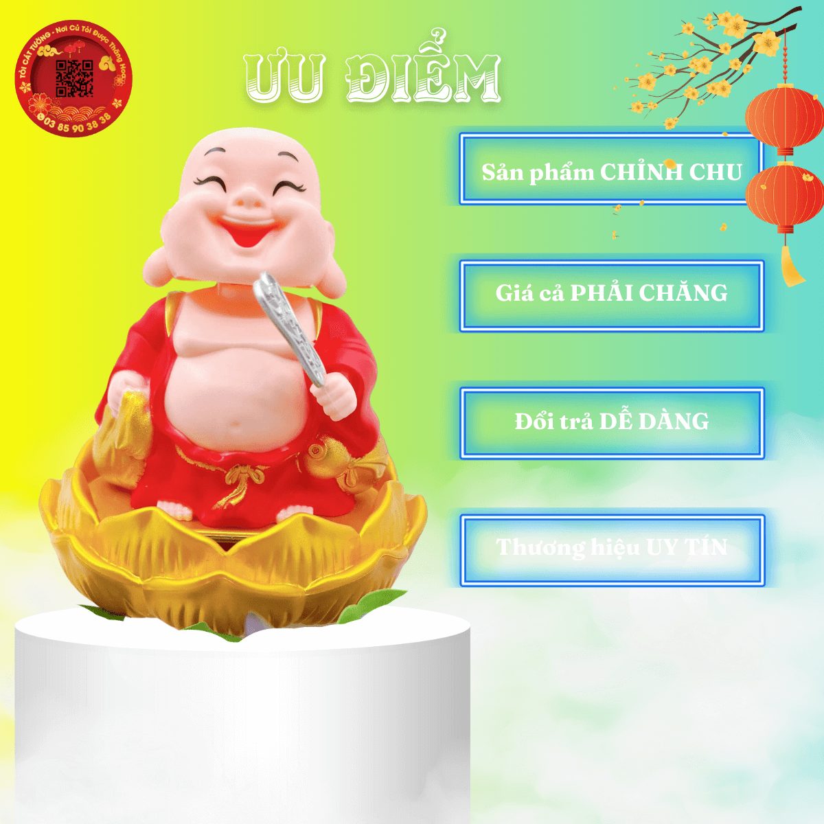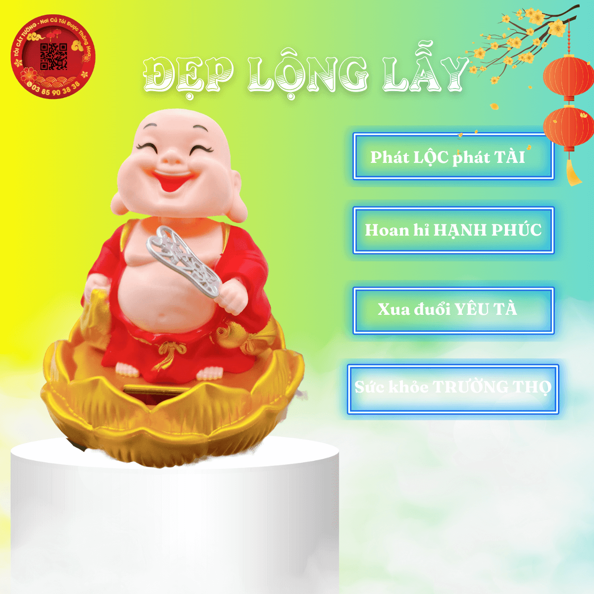 Tượng phật Di lặc được khắc họa với miệng cười thật tươi và cái bụng thật lớn, thể hiện tâm tư và mong ước của đạo Phật trong việc đem nụ cười vào đời sống chúng ta, phật Di Lặc là biểu tượng cho sự vui vẻ, may mắn, sự an lạc và hạnh phúc, đây là một vật phẩm tôn kính trong Phong Thủy, khi trưng bày vật phẩm này trong nhà sẽ mang lại nhiều điều tốt lành cho gia đạo, gia chủ…